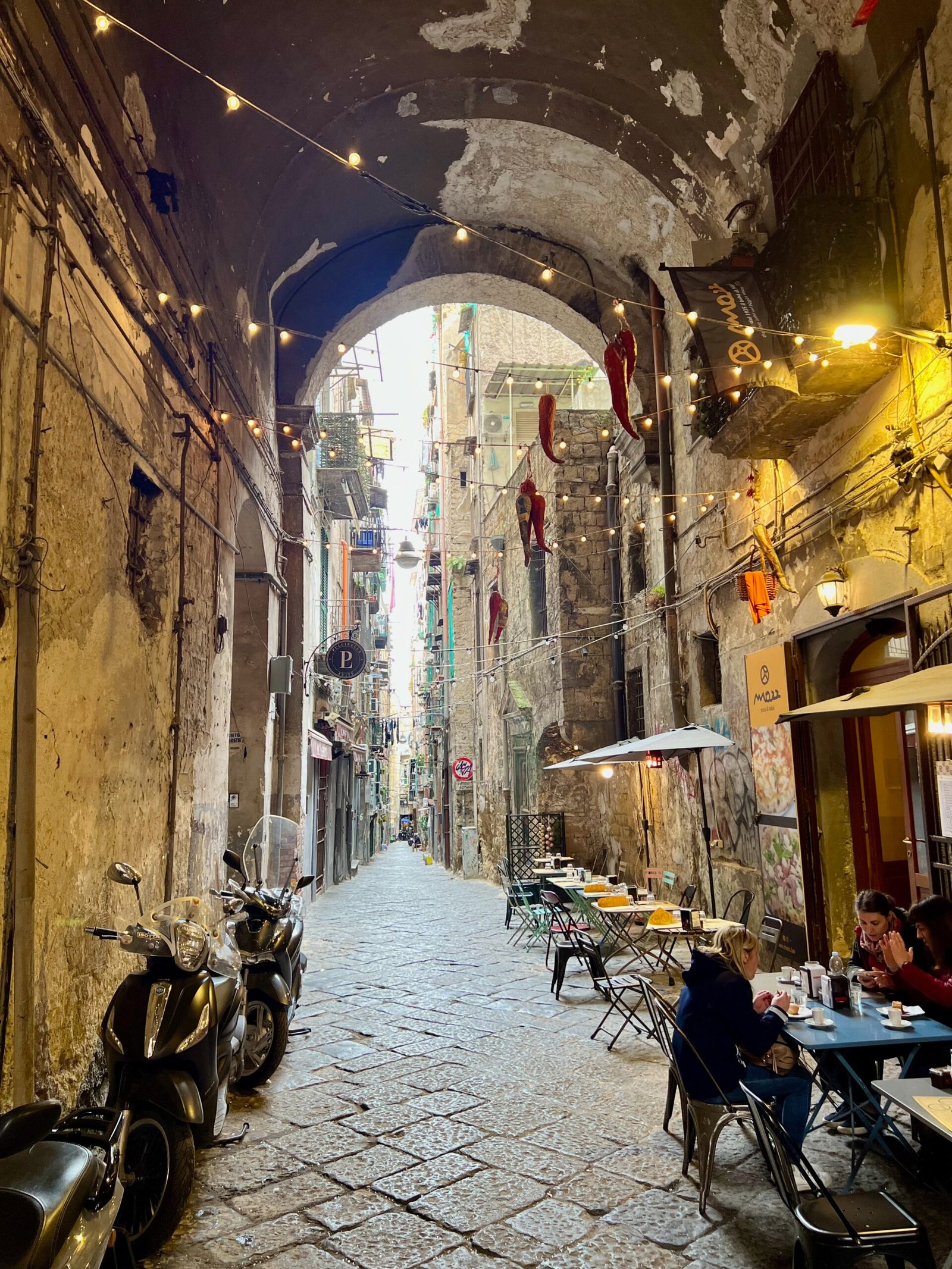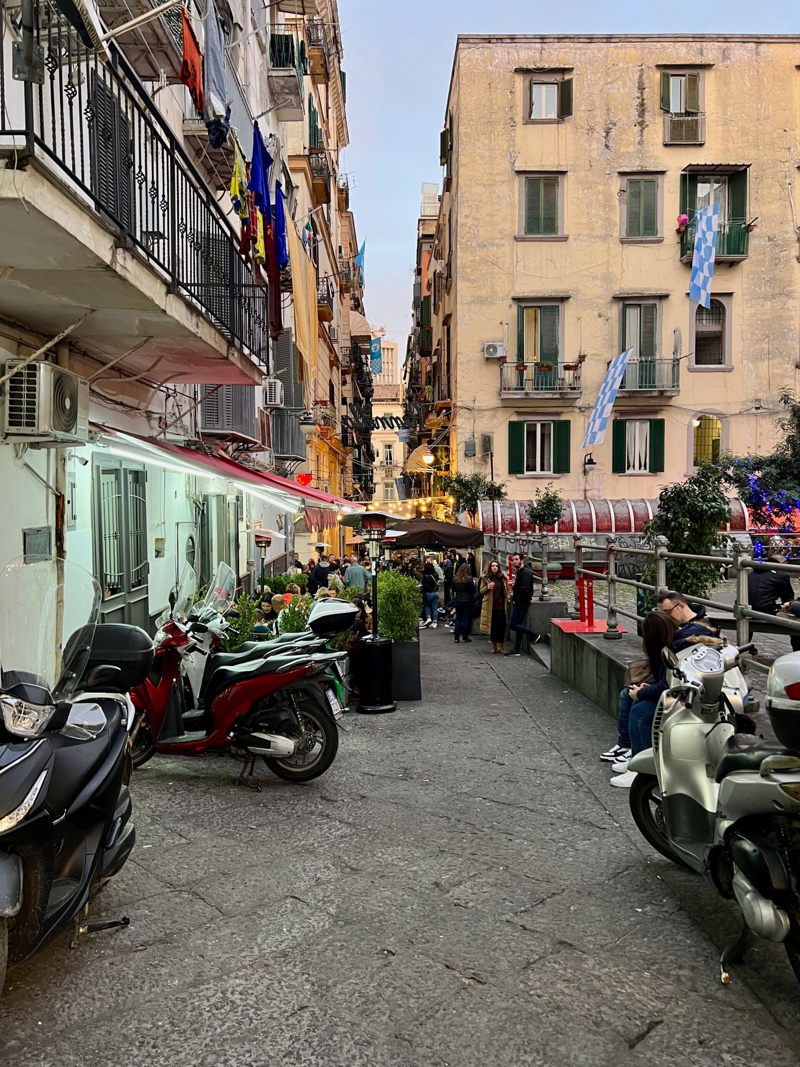 Desde el primer momento, Nápoles te golpea con su energía. Las calles estrechas, el tráfico imposible, las voces que se cruzan de balcón a balcón y ese olor constante a café, pizza y mar crean una atmósfera única. No es una ciudad para prisas ni para expectativas rígidas: aquí hay que dejarse llevar.