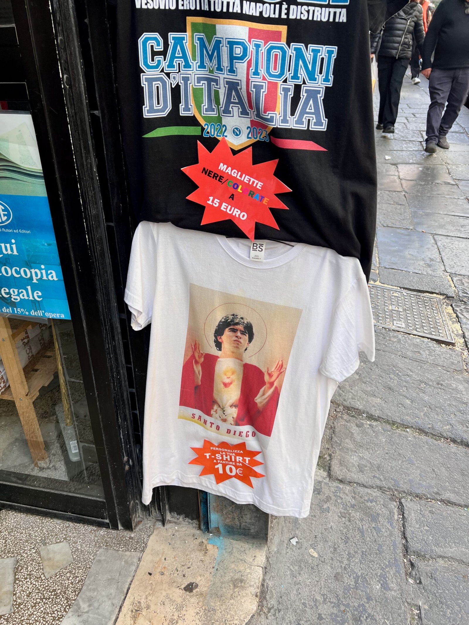 En serio, no hay nada como llegar un día de noche al apartamento que has alquilado en centro de Nápoles para pasar unos días, y que a los 10 minutos te llamen a la puerta para pedirte que les dejes colgar un póster de Maradona desde tu balcón. Eso es lo que yo llamo una inmersión cultural acelerada. Luego ya lo de que estén a punto de atropellarte en Vespino a cada paso te parece lo normal.