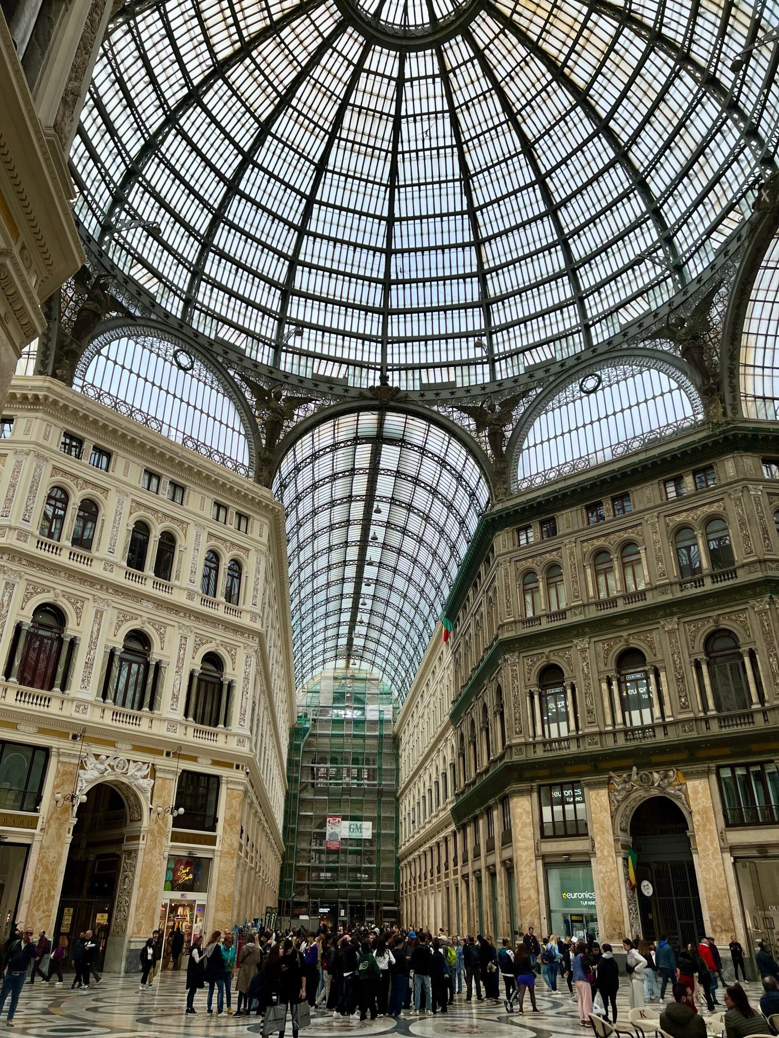 Si has conseguido sobrevivir sin daños físicos a los motoristas que te habrán estado haciendo recortes durante todo tu paseo por el Centro Histórico y el Barrio Español, te recomiendo que bajes por la Via Toledo hasta la Galería Humberto I. La calle y la galería están llenas de tiendas de moda italiana. Nosotros tuvimos la suerte de ver una procesión por Via Toledo aunque no nos enteramos muy bien de cual era el motivo de la misma. La galería es un edificio con forma de cruz que tiene un techo de cristal abovedado con cúpula circular en el centro realmente espectacular.