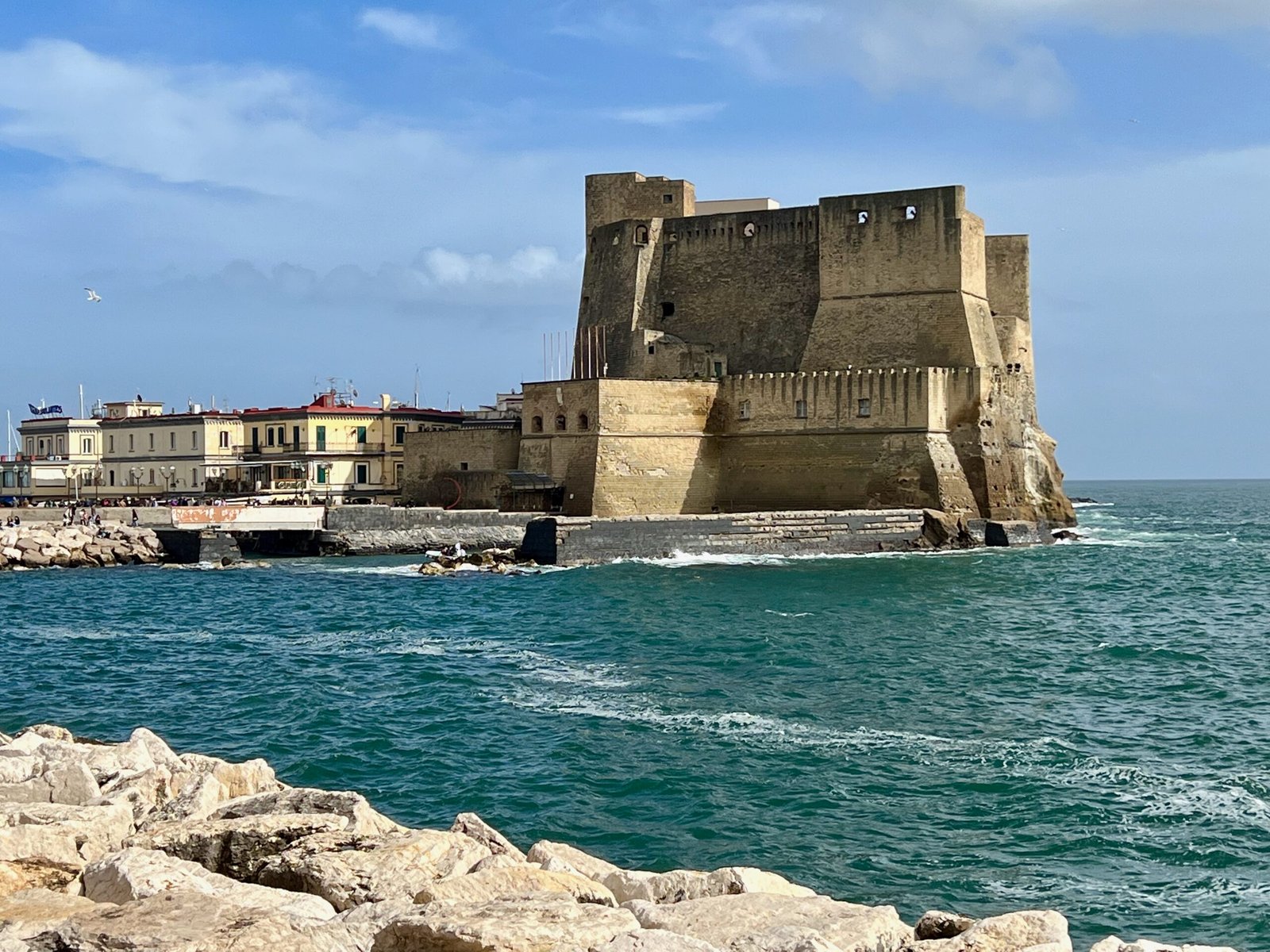 Entre la galería y el puerto de Nápoles se encuentra el Castel Nuovo, un enorme castillo del siglo XIII con un imponente arco de mármol en una de sus entradas. Después te sugiero que sigas el bonito paseo a lo largo del puerto hacia el sur hasta llegar al Castel dell’Ovo, otro precioso castillo medieval en un islote junto al puerto al que solo se accede por un estrecho paso con unas vistas espectaculares. Las líneas rectas y rústicas del castillo recuerdan mucho a Dubrovnik.