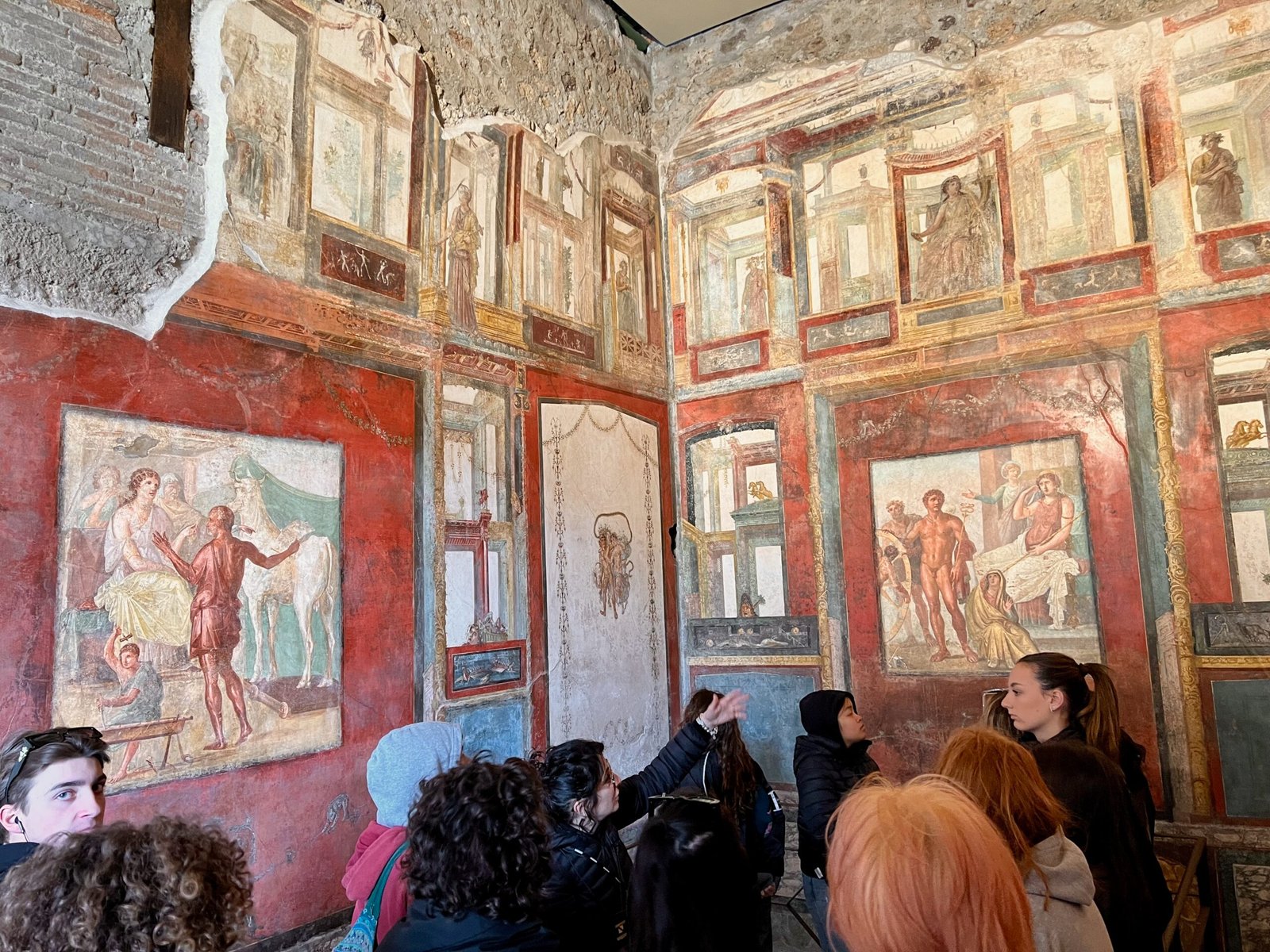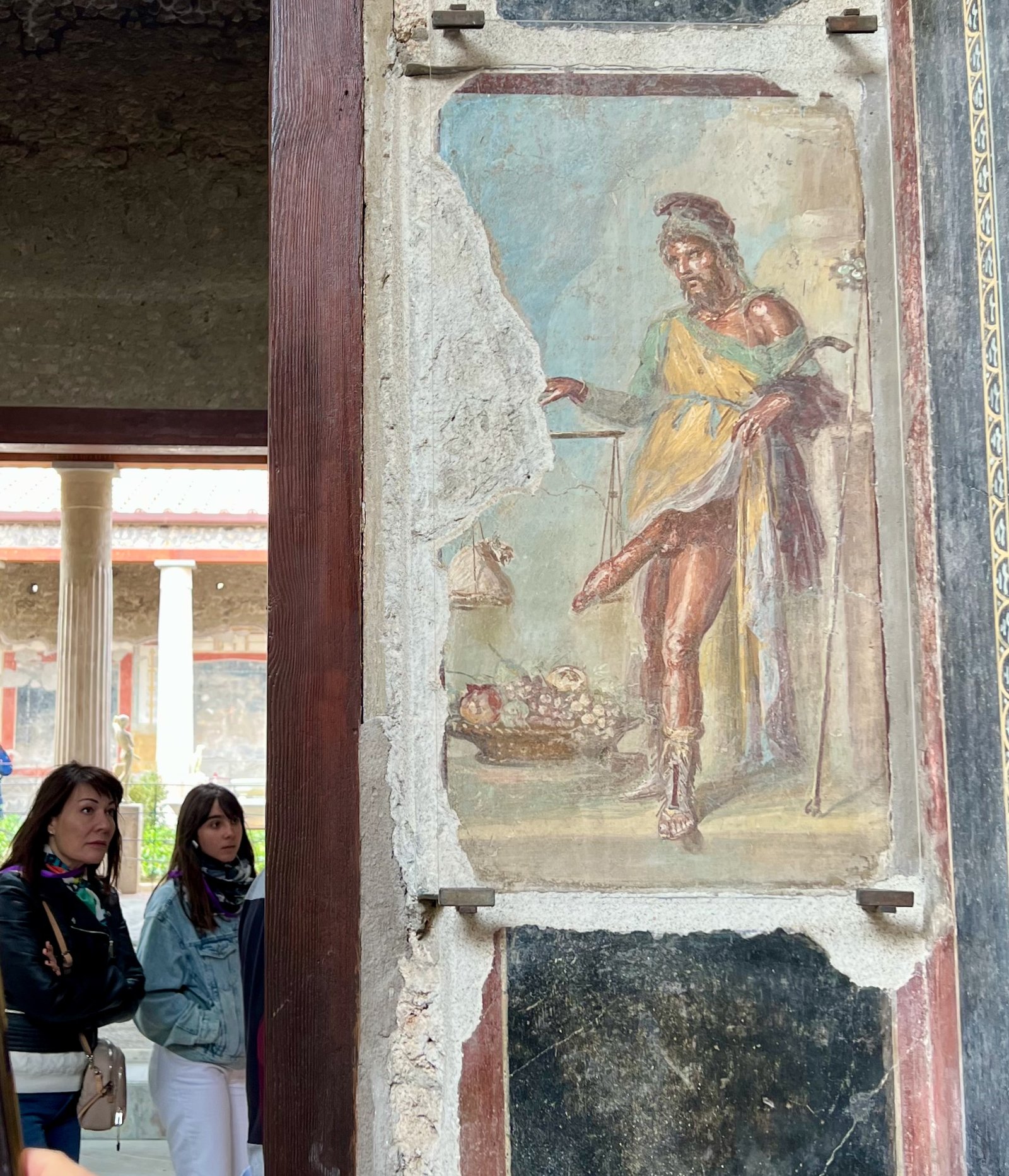 Al haberse quedado congelada en el tiempo por la cenizas que se abatieron sobre la ciudad cuando el volcán Vesubio entró en erupción en el año 79 d.C., se conservan restos de casi todas las zonas de la ciudad. Puedes pasear por sus calles viendo los edificios públicos de la época, como el anfiteatro, los baños públicos, los lugares de culto, una panadería, un lupanar, etc. Y también puedes ver algunas de las residencias privadas de la época, como la Casa del Fauno, la Villa de los Misterios. Hay muchos frescos, en general bien conservados, y algunos de una gran belleza.